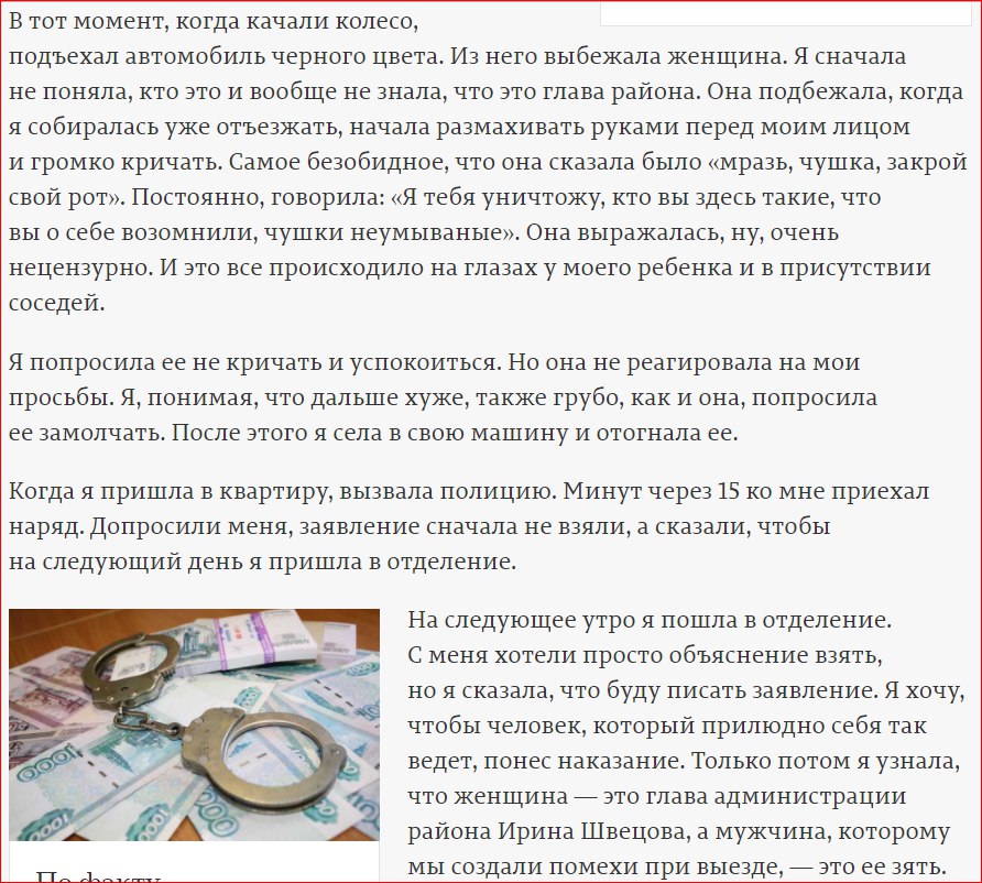 Его причиной стал автомобиль, который муж Юлии накануне инцидента поставил возле гаража, который, как впоследствии выяснилось, принадлежал зятю Ирины Швецовой.