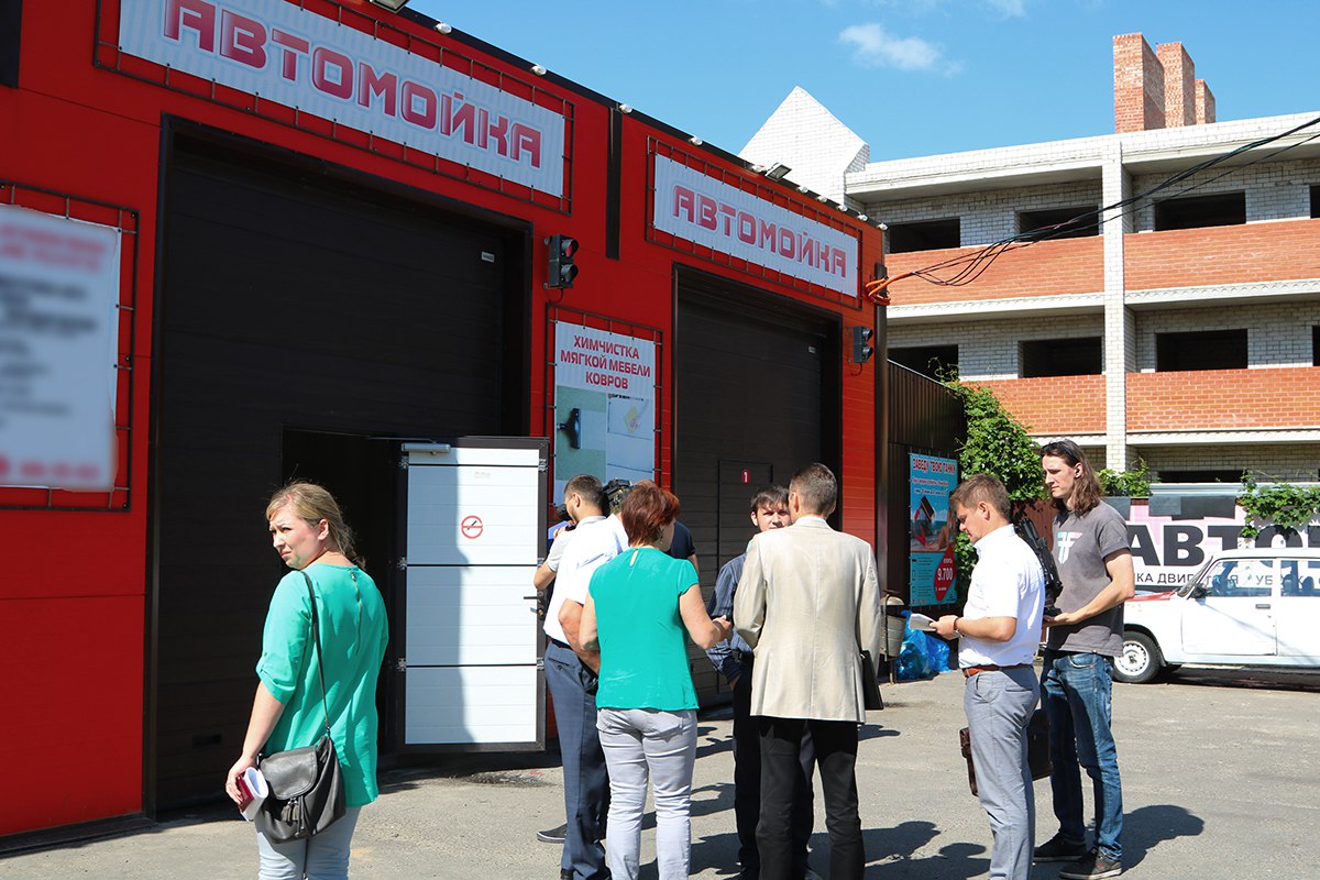 Остановилась комиссия и на улице Красный Маяк. Рядом с домом гараж, оборудованный под автомойку. На воротах висит ковер.