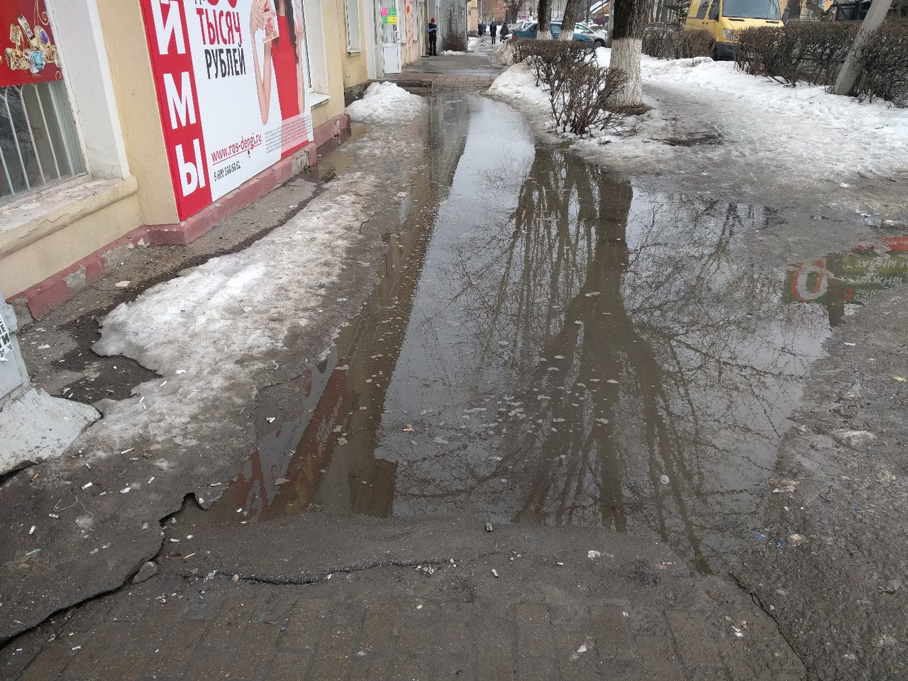 Даже центральные улицы оказались затопленными. Людям приходится выходить на проезжую часть, чтобы обойти огромные лужи, которые местами в размере достигают десятков метров. Местные жители уверены, что во всём виноваты районные власти. По их словам, зимой на Володарке тротуары практически не расчищались от снега.