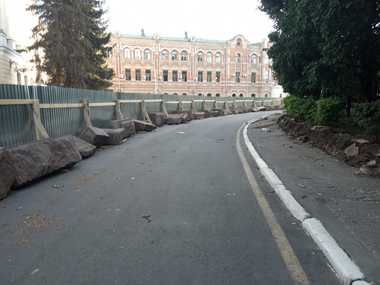 Излюбленное место отдыха горожан обнесли забором. Бетонное основание и гранитные плиты рабочие уже разобрали. Плиты отполируют и вернут в Круглый сквер.
