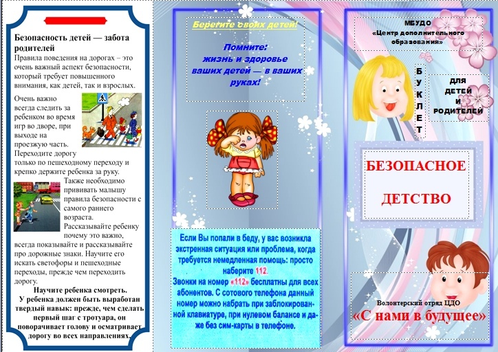 Волонтеры отряда «С нами в будущее» Центра дополнительного образования Климовского района Брянской области приняли участие во Всероссийской акции «Безопасность детства». Они изготовили буклеты о правилах поведения у водоемов, безопасности на дорогах и об опасности открытого окна в квартире.