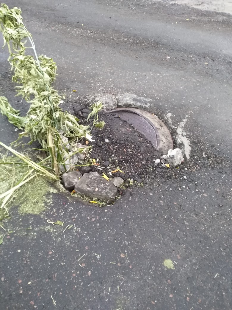 в поселке Белые Берега Фокинского района Брянска обнаружили очередную опасную ловушку. В соцсетях появилась фотография разрушенного люка с раздавленной крышкой. Кто-то пытался замаскировать образовавшееся отверстие веткой.