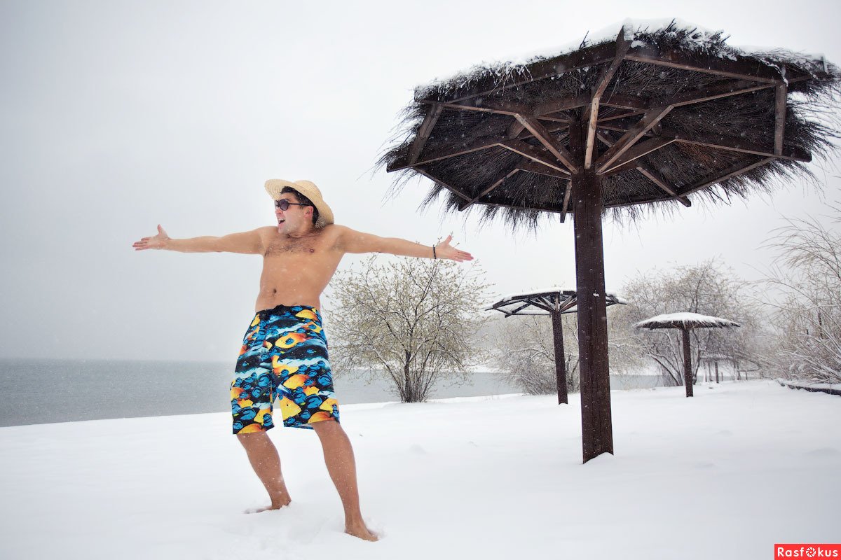Ещё бы в тулупе вышел. Купающихся всего 4 человека.