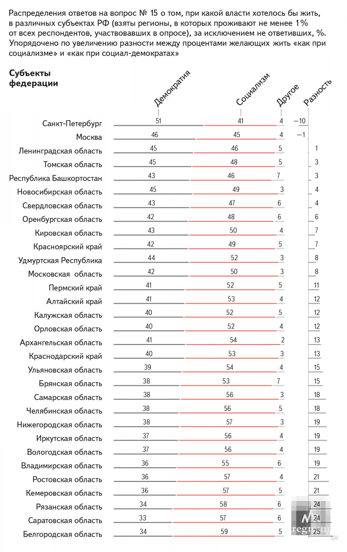 Самыми прозападными городами признаны две столицы - Санкт-Петербург и Москва. В Питере также меньше всего сторонников социалистического устройства государства.