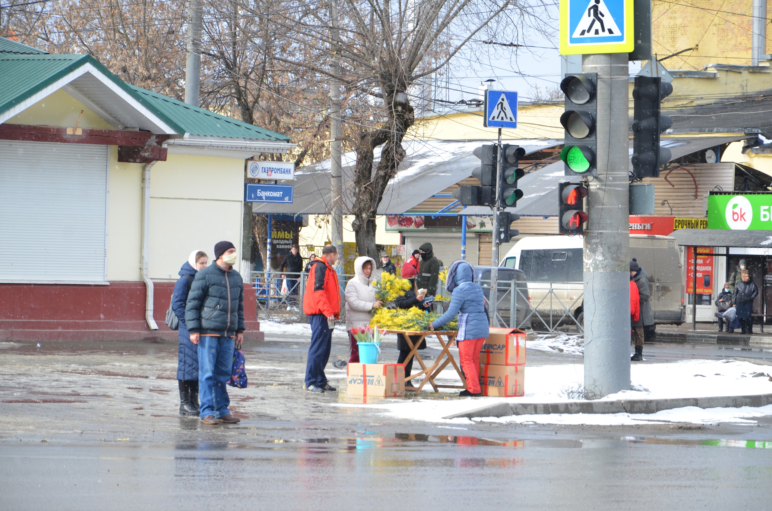 В стремлении поздравить жен, сестер и матерей, брянцы выстраиваются в огромные очереди перед цветочными киосками и точками. Цветы скупают как мужчины, так и женщины.