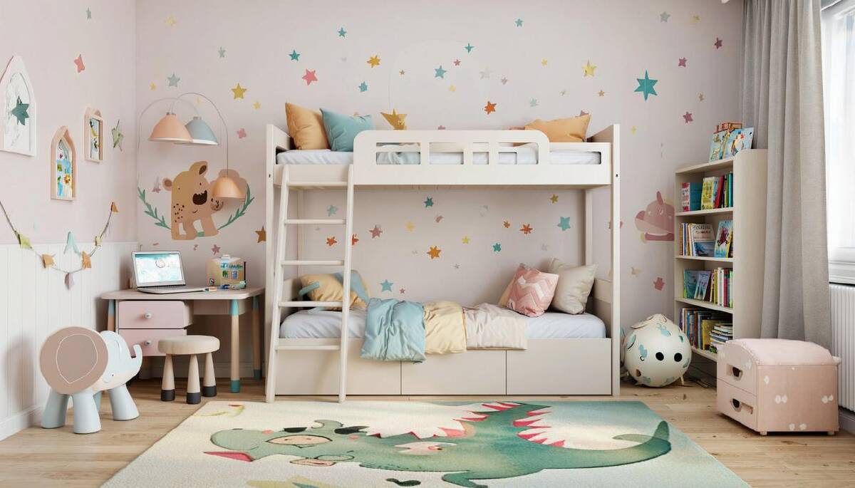 - Многофункциональная мебель. Выбирайте мебель, которая может выполнять несколько функций — кровати с ящиками для хранения, столы, которые могут быть использованы для учебы и игр.