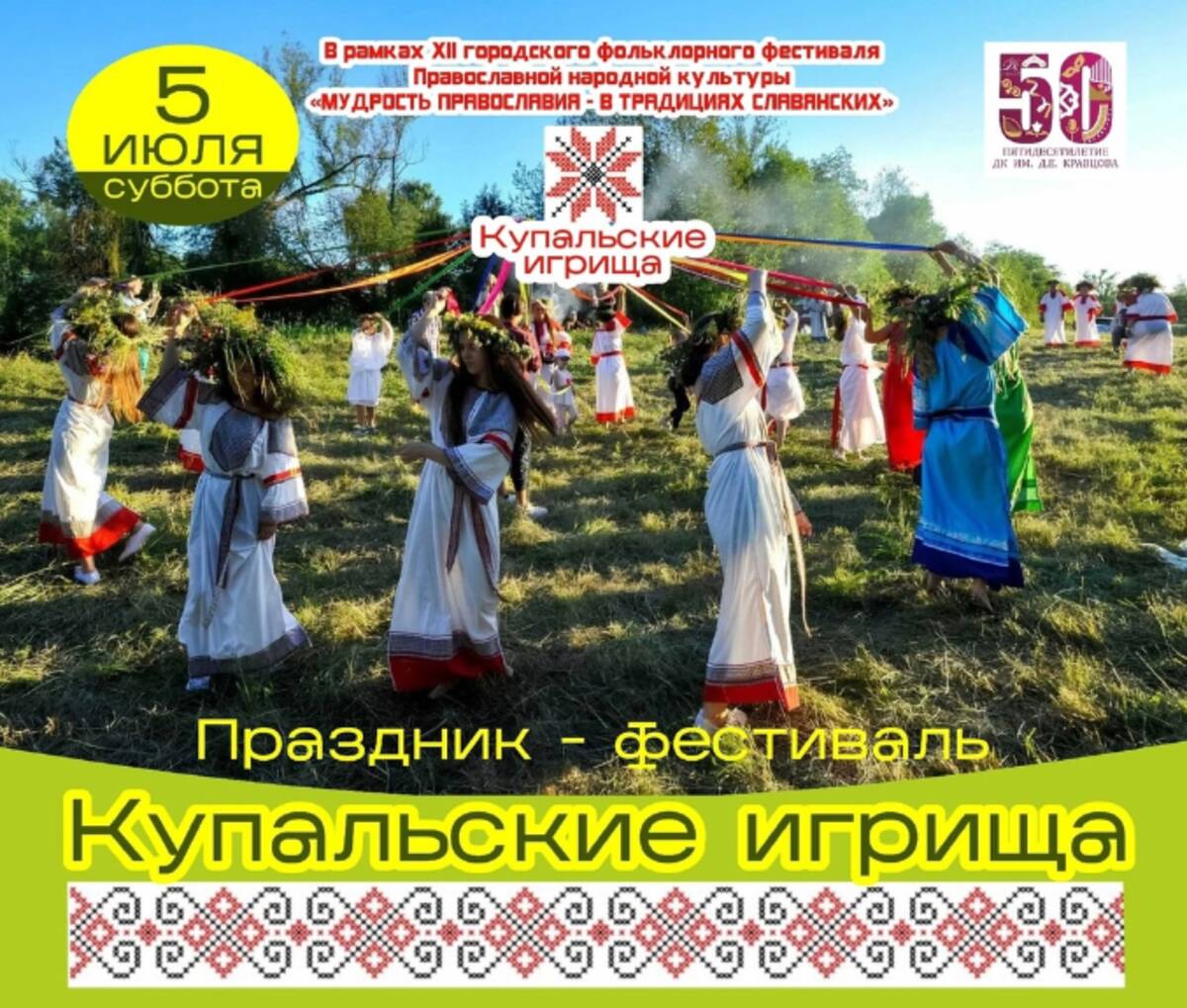 5 июля Городской Дворец культуры им. Д.Е. Кравцова станет центром празднования "Купальских игрищ" в рамках XII Городского фольклорного фестиваля "Мудрость Православия – в традициях славянских". Открытие мероприятия запланировано на 15:00.