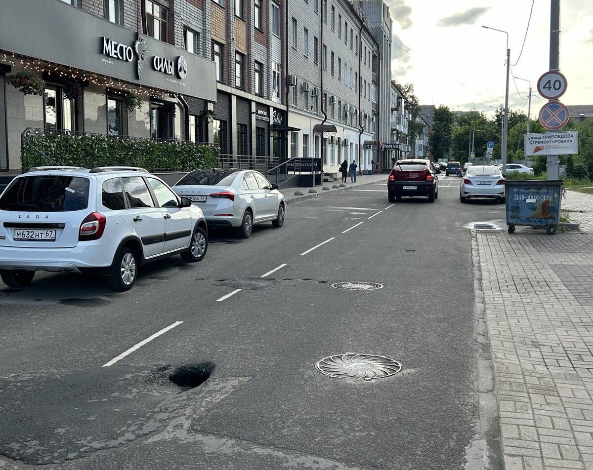 На отремонтированной в прошлом году улице Грибоедова в Брянске образовался провал рядом с люком. Об этом сообщил брянский урбанист Алексей Зиненко, приложив фото.