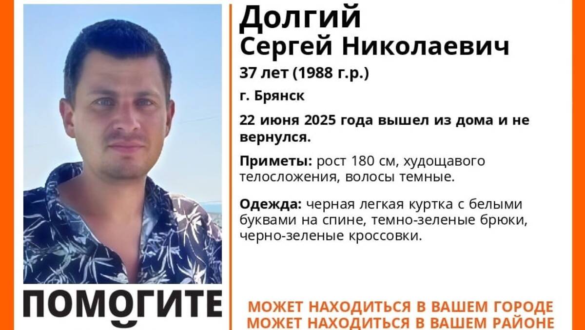 Местонахождение Сергея Долгого, мужчины с тёмными волосами, неизвестно с 22 июня 2025 года. В тот день он вышел из дома и не вернулся. С тех пор он не выходил на связь с родными.