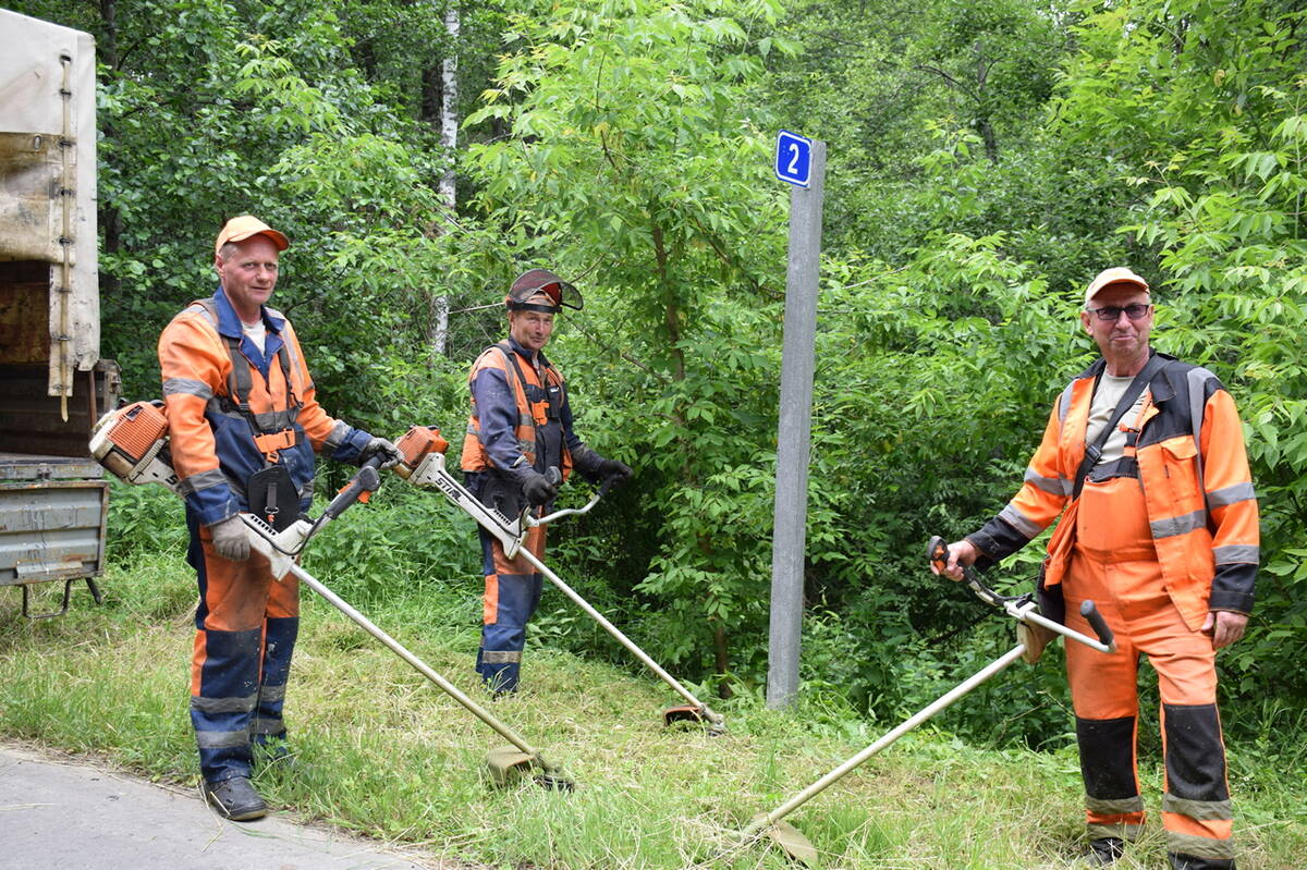 Борьба с травой ведётся ручными триммерами и механизированным способом. Работники Климовского ДРСУч в первую очередь обкашивают трактором обочины автодорог Климово — Стародуб, Климово — Новозыбков и Климово — Чуровичи, а затем и другие дороги местного значения. Дополнительно ручной обкос осуществляют Н. И. Жоров, А. С. Кошелев, и В. В. Клещов (на снимке). Они обкашивают автобусные павильоны, посадочные площадки, мосты, дорожные знаки и сигнальные тумбы.