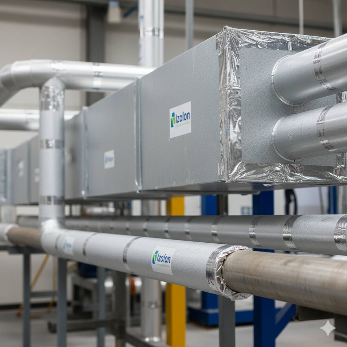 Изолон особенно востребован в производственном секторе, где необходимо одновременно обеспечить теплоизоляцию, звукоизоляцию, амортизацию и безопасность эксплуатации. Один из ключевых сегментов применения — это системы вентиляции и кондиционирования воздуха (HVAC), где материал используется для тепло- и шумоизоляции воздуховодов, обеспечивая снижение энергопотерь и комфортную акустику.