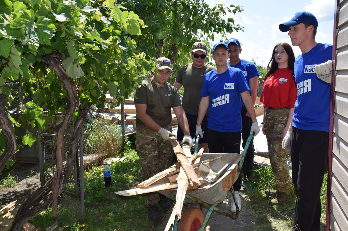 В состав делегации вошли представители всероссийского студенческого корпуса спасателей, молодёжное крыло "Народного фронта", а также представители "Молодой Гвардии "Единой России" и волонтёрской роты боевого братства. Ребята помогают жителям поселка Климово убирать строительный мусор, расчищать от него дворовые территории.