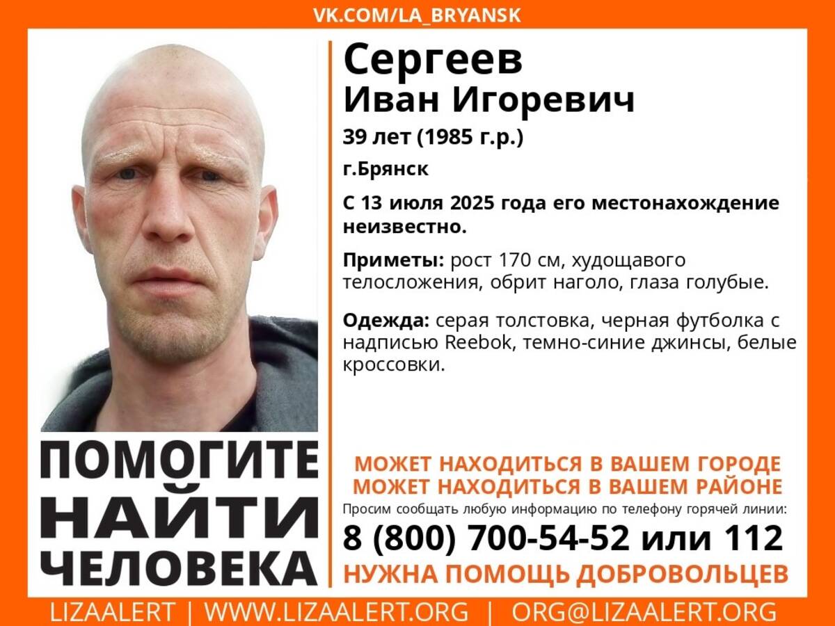 В Брянске без вести пропал 39-летний Иван Сергеев. Об этом сообщили в поисково-спасательном отряде «Лиза Алерт».