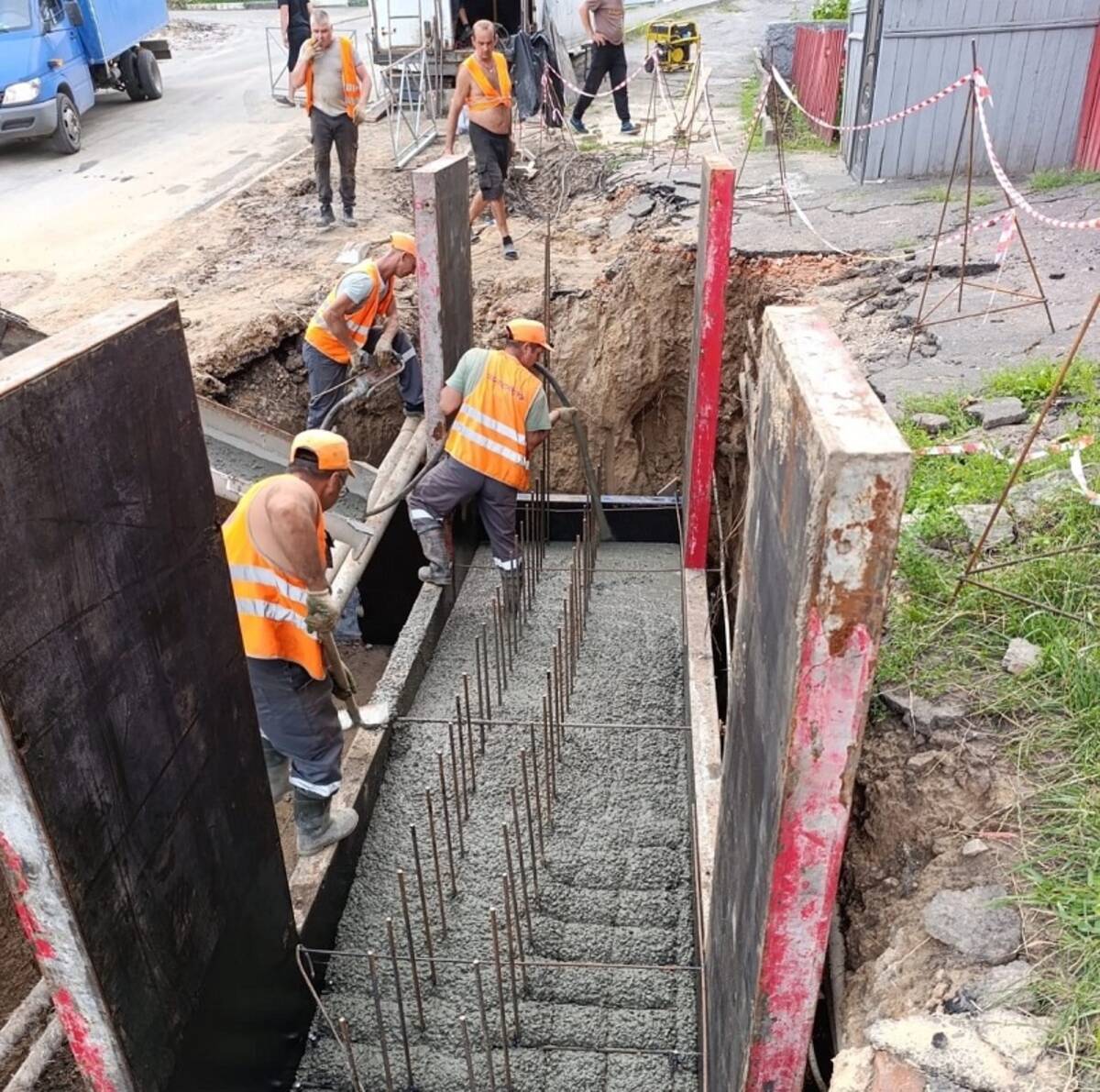 В настоящее время подрядчик на перекрестке Горького и Луначарского выполняет возведение подпорной стены.