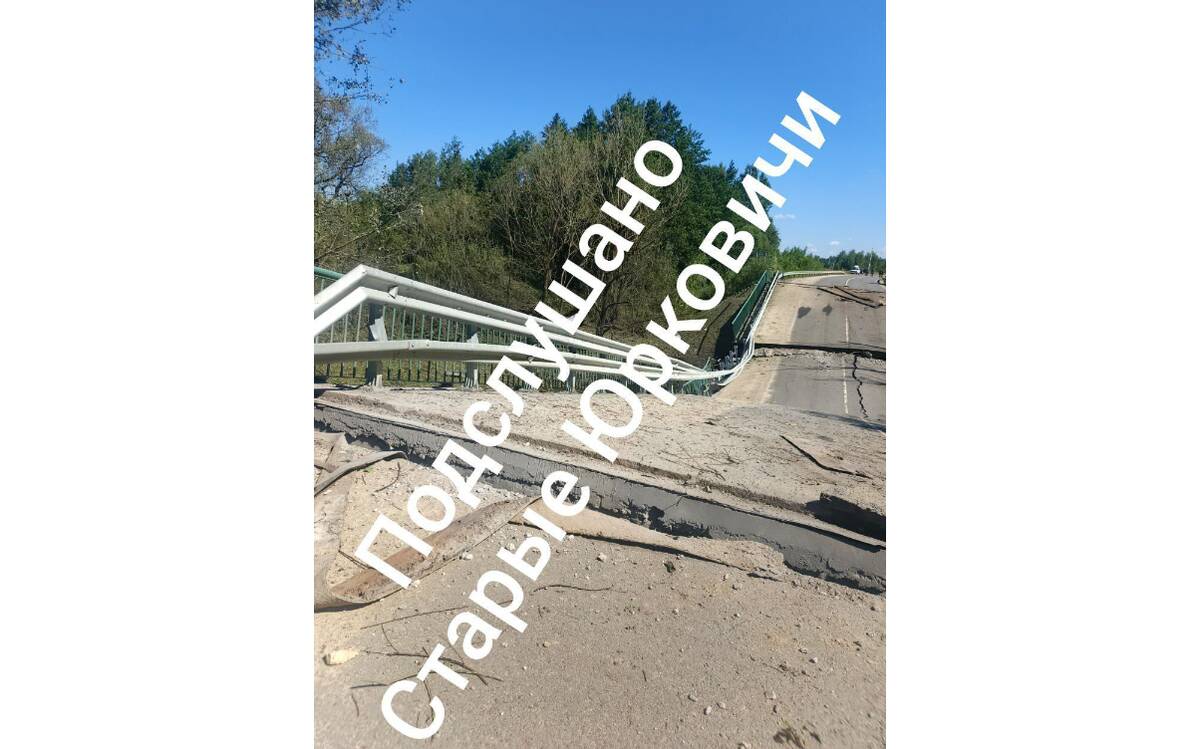 В канале «Подслушано Старые Юрковичи» появились фотографии моста. Выяснилось, что мост автомобильный, и разрушен он не полностью.