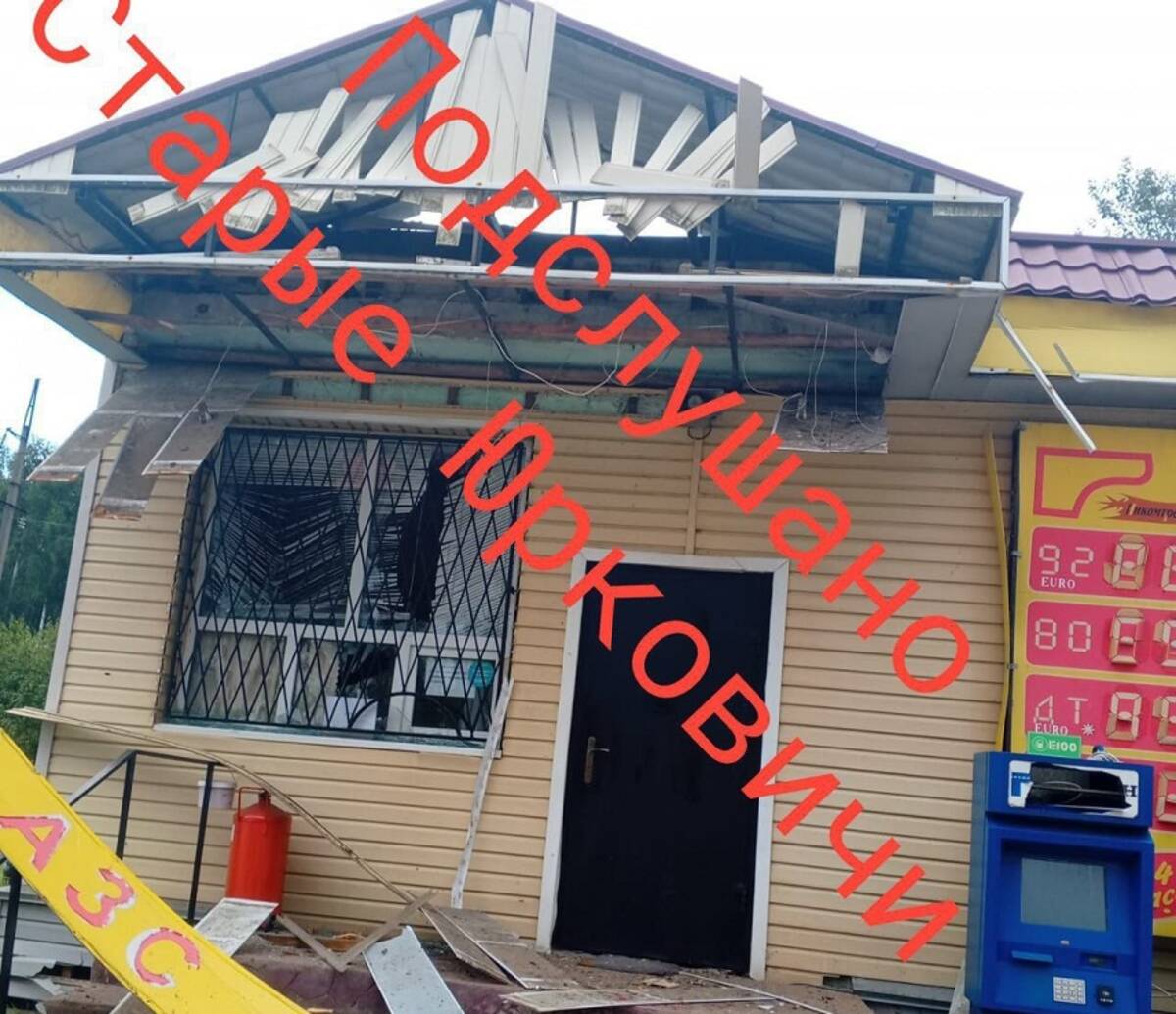 Сегодня, 6 августа, появились фото последствий подлого удара. В помещении выбиты окна, повреждения крыша, бензоколонки.