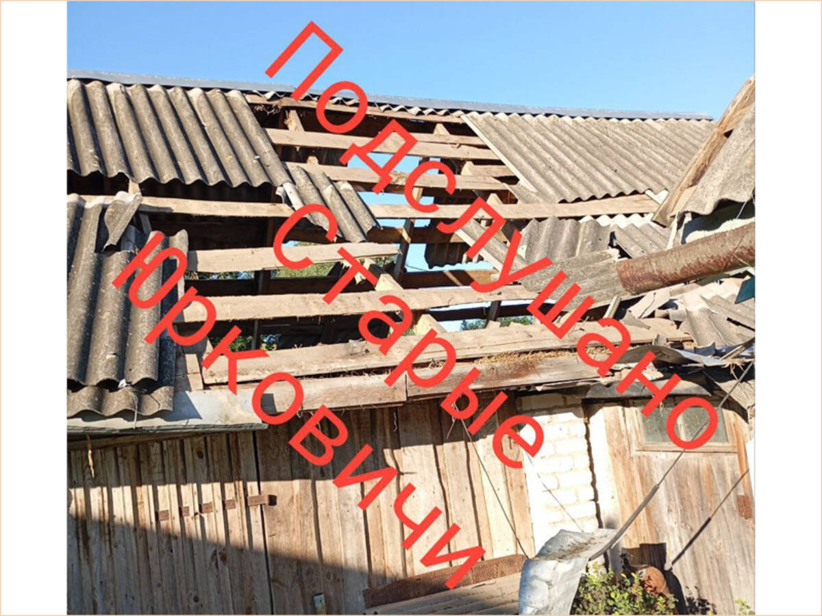 Видно, что в атаке пострадало несколько деревянных строений. У некоторых серьезно повреждена кровля. Также нарушено остекление. Официальной информации о ЧП пока не поступало.