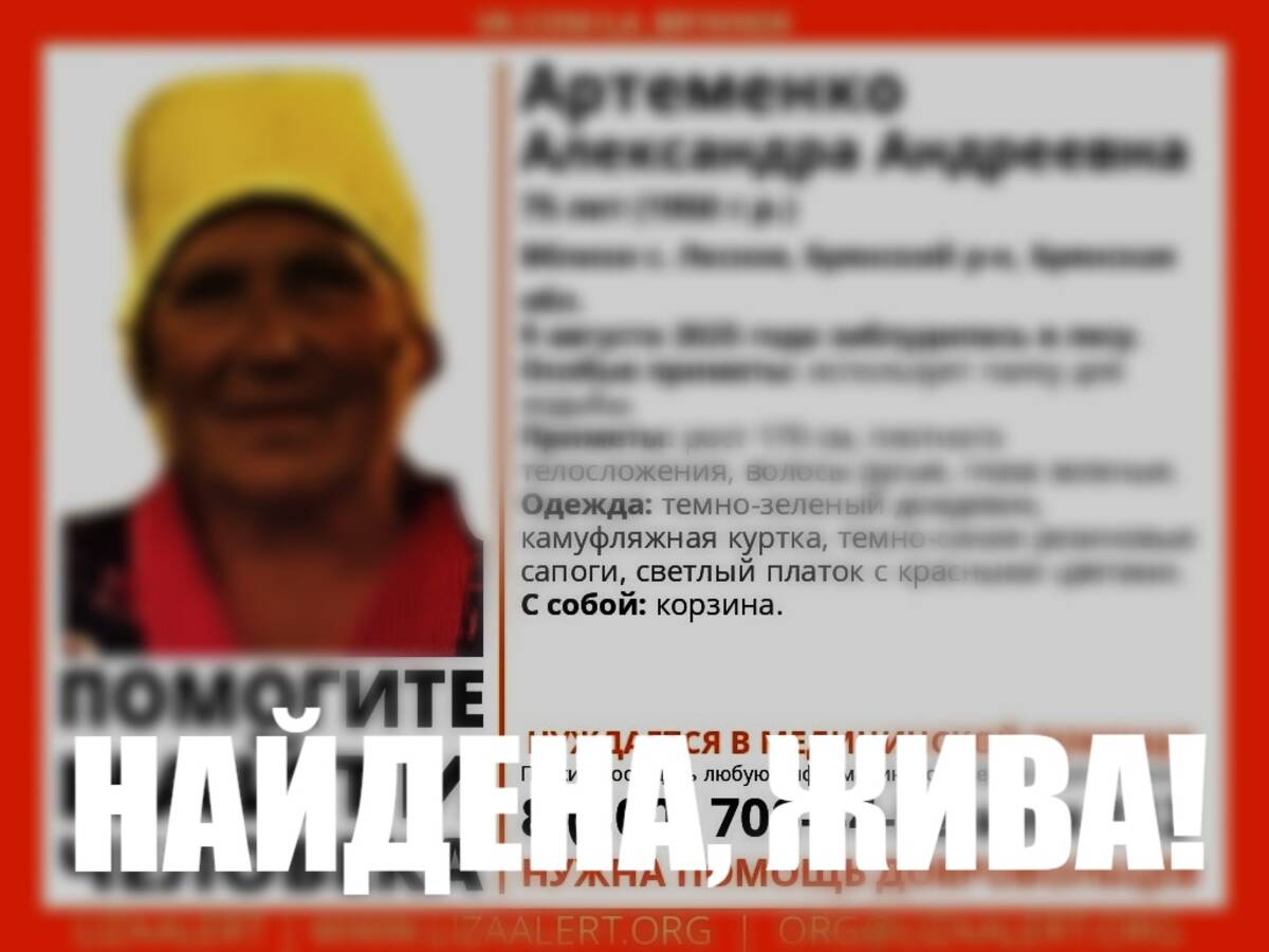 Поисковая операция в Брянской области завершилась радостным известием: 12 августа была найдена живой Александра Андреевна, которая пропала в лесном массиве неподалеку от села Лесное.