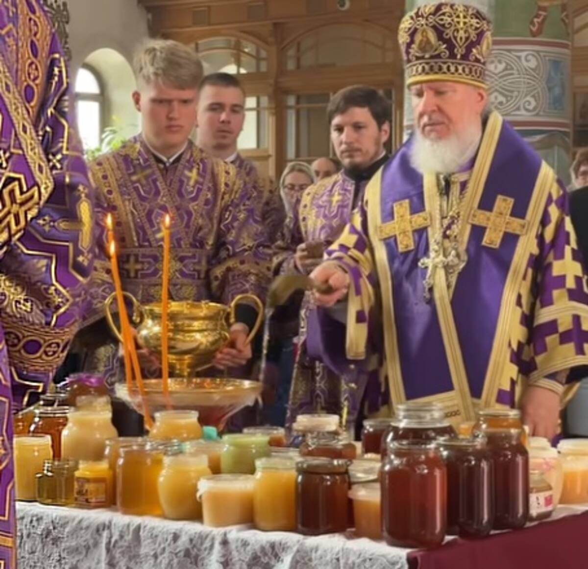 Затем окропил святой водой мед нового урожая. Об этом рассказала пресс-служба Брянской епархии.