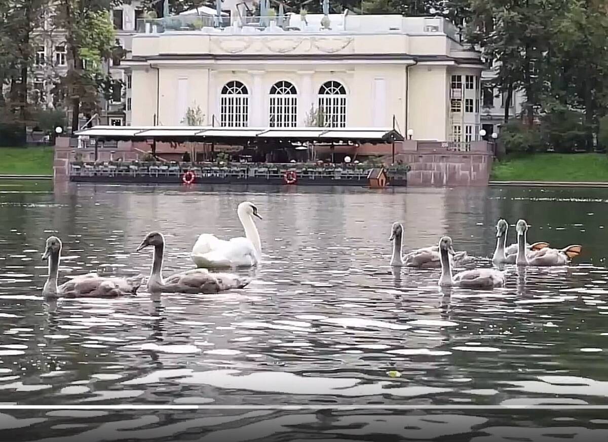 В этом году у пары лебедей-шипунов на Патриарших прудах в Москве появилось на свет 6 птенцов. Это довольно популярное место среди туристов и местных жителей.