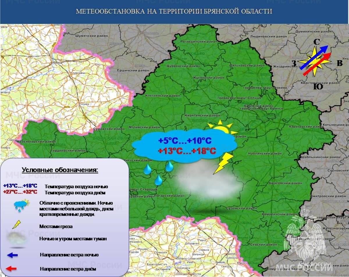 25 августа в Брянской области ожидается переменная облачность. В ночные часы местами возможен небольшой дождь, днем – кратковременные дожди, а в отдельных районах прогнозируются грозы.