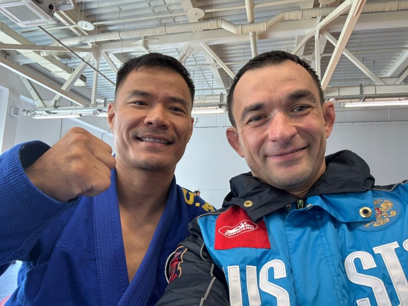 — Для меня это первые соревнования после длительного восстановления... Допустил досадную ошибку в начале схватки, но, на ошибках учатся. Учитывая, что я выступал в чужой весовой категории... второе место я оцениваю положительно, — рассказал Кобец. И особой удачей он назвал возможность пообщаться и провести товарищеский поединок с бразильским чемпионом Хьюго Хидеки Шиоми (на фото ниже).
