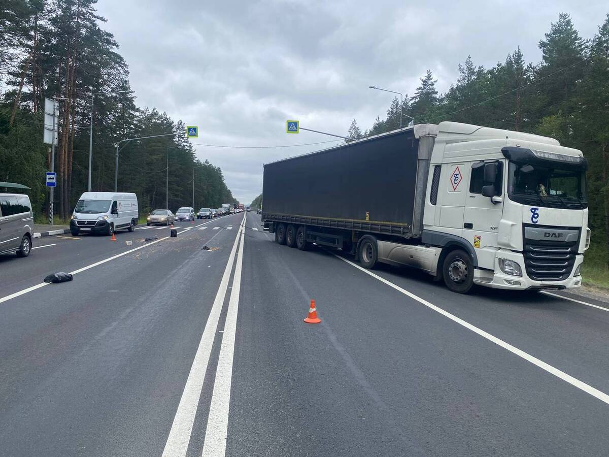 51-летний водитель грузового автомобиля DAF FX-480FT с полуприцепом, двигавшийся из Брянска в направлении Орла, совершил наезд на 45-летнюю женщину-пешехода. По информации Госавтоинспекции Брянской области, пешеход перебегала дорогу по нерегулируемому пешеходному переходу справа налево относительно движения автомобиля.