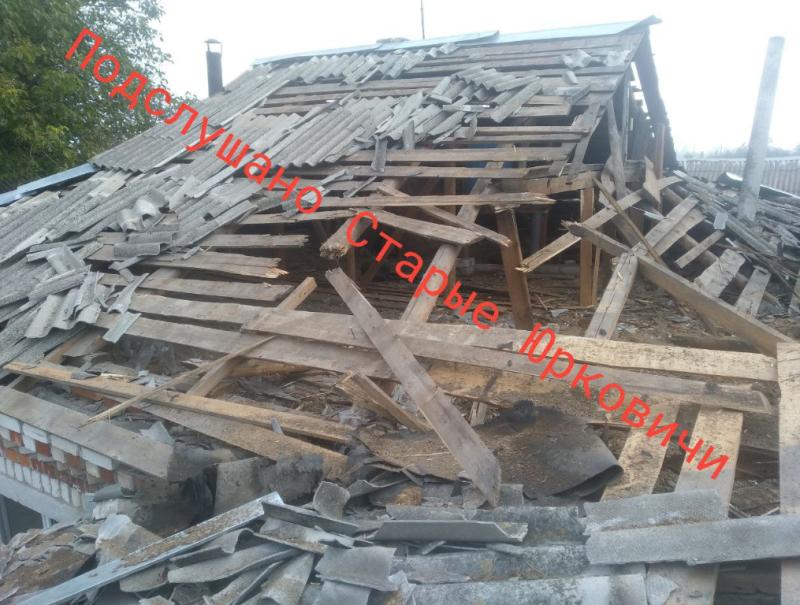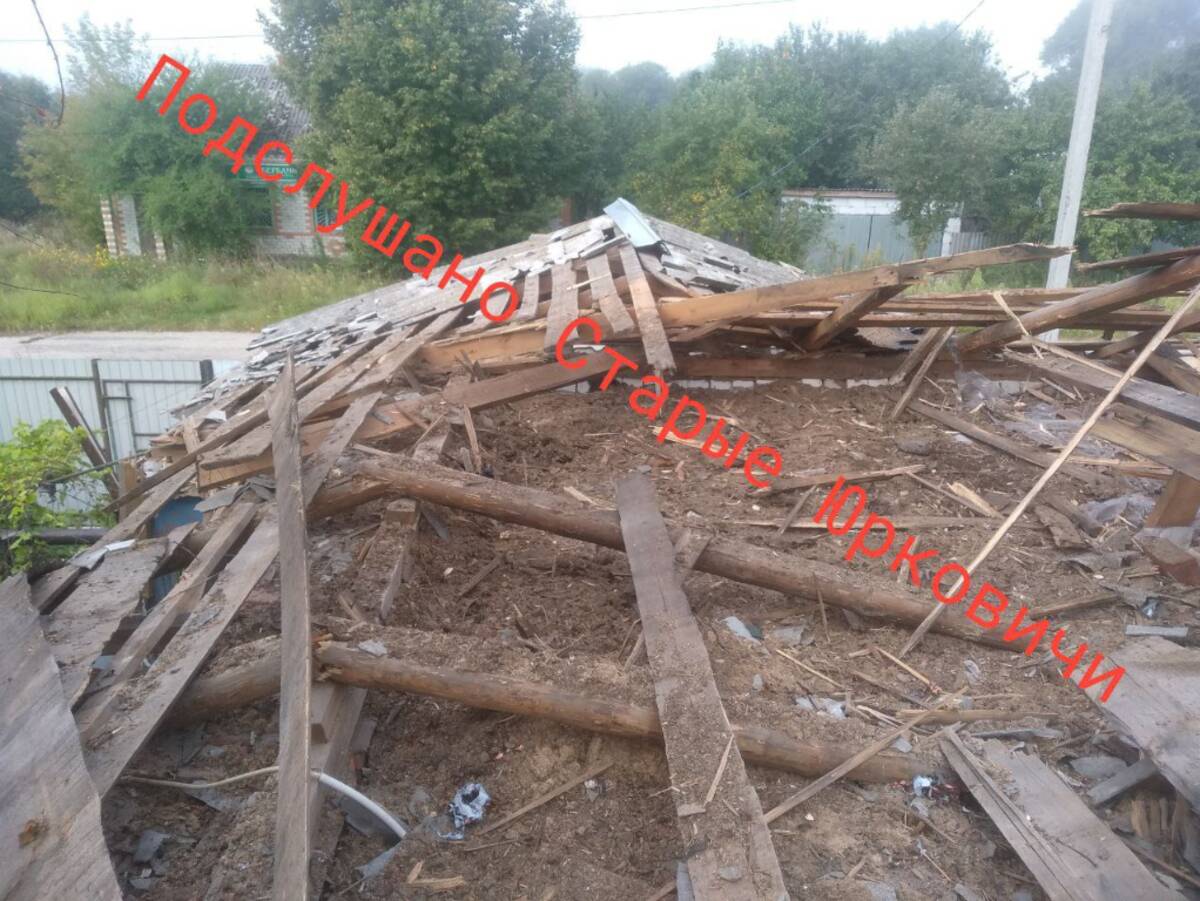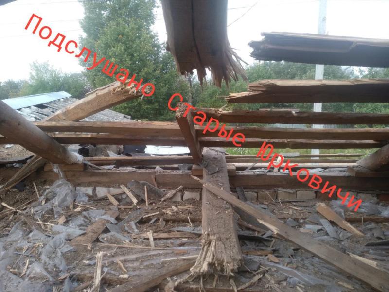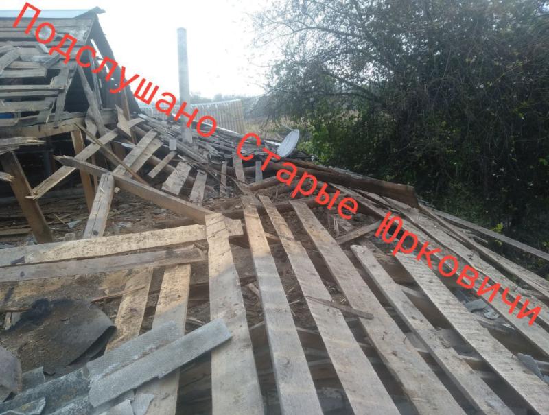Фотографии разрушенной крыши появились в телеграм-канале «Подслушано Старые Юрковичи».