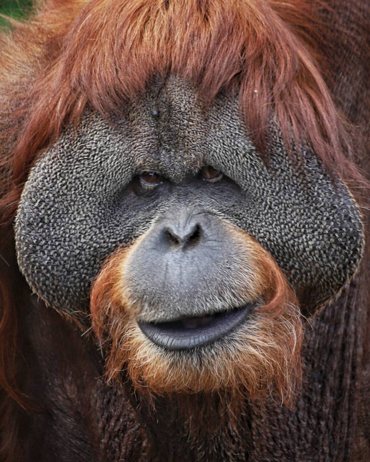 Суматранские орангутаны демонстрируют высокий интеллект: они используют орудия труда для добычи пищи, узнают себя в зеркале и занесены в Красную книгу как вид, находящийся под угрозой исчезновения. Основные угрозы для их популяции – вырубка тропических лесов, охота и нелегальная торговля.