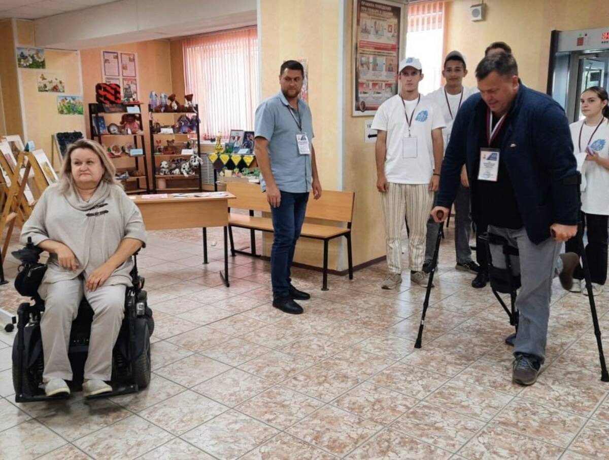 Ребята помогают колясочникам преодолеть возвышения на пути, ориентируют внутри помещения и сопровождают по дороге на избирательный участок.