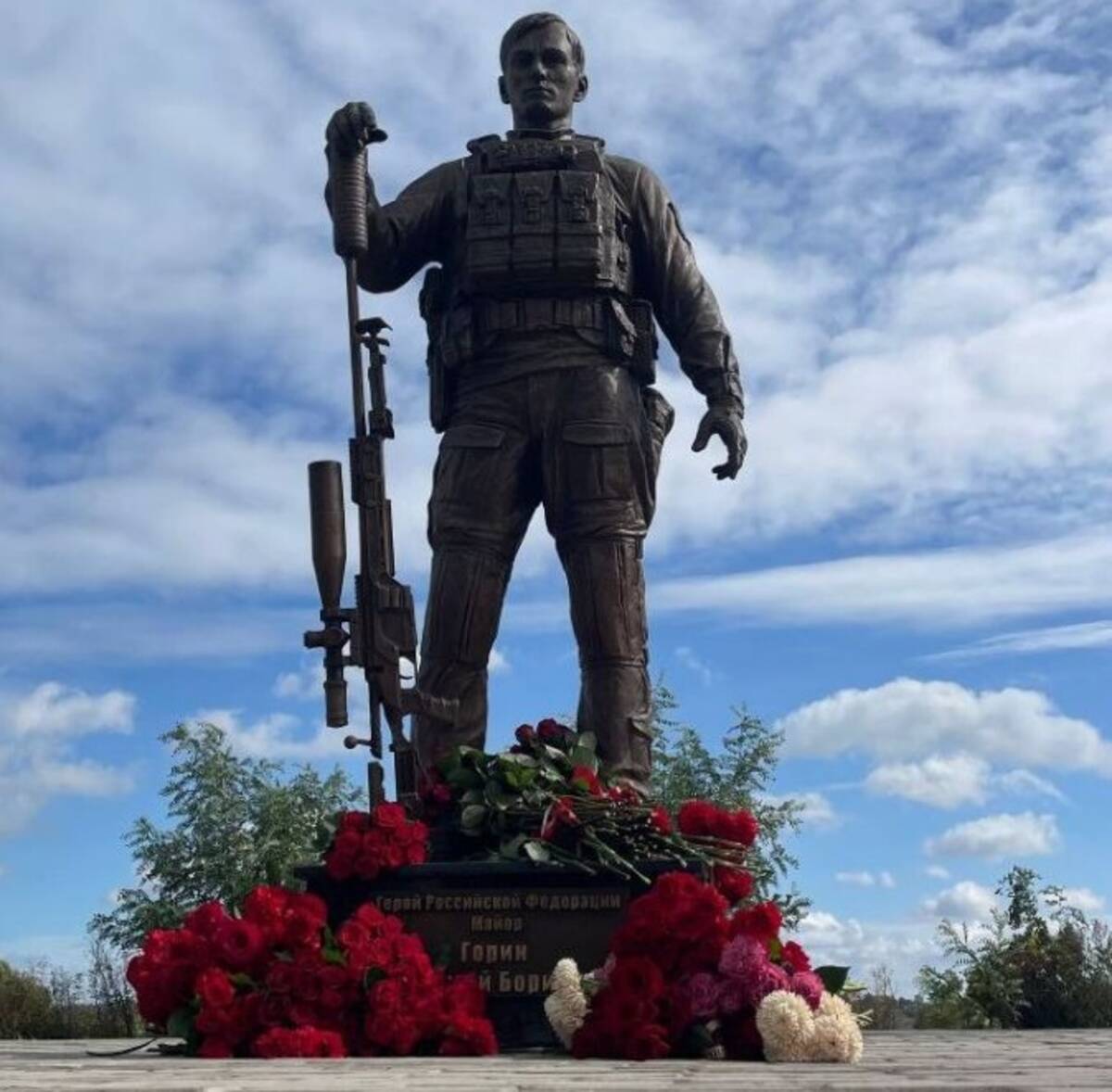 В Севске Брянской области в сквере «Память» бронзовый монумент офицеру Сергею Горину. Он погиб в боях за освобождение Донбасса 8 марта 2022 года.