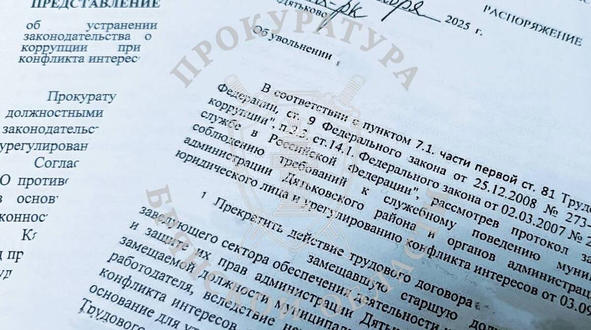 Прокурор города внёс представление главе администрации Дятьковского района. По результатам его рассмотрения трудовой договор с женщиной был расторгнут в связи с утратой доверия.