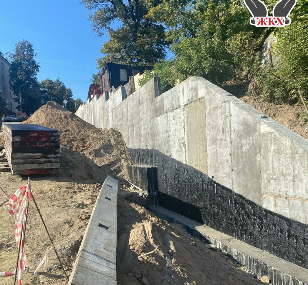 Продолжаются работы по возведению подпорной стены и уширению проезжей части на перекрестке от улицы Горького с улицей Луначарского.