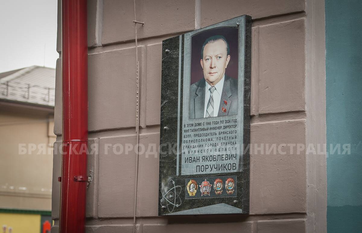 В Брянске увековечили память выдающегося государственного деятеля и инженера Ивана Поручикова — на фасаде дома №45/9 по улице Луначарского, где он прожил более шести десятилетий, торжественно открыли мемориальную доску. Инициатива установки принадлежит Брянской ассоциации промышленников, а в церемонии приняли участие представители власти, коллеги и общественность.