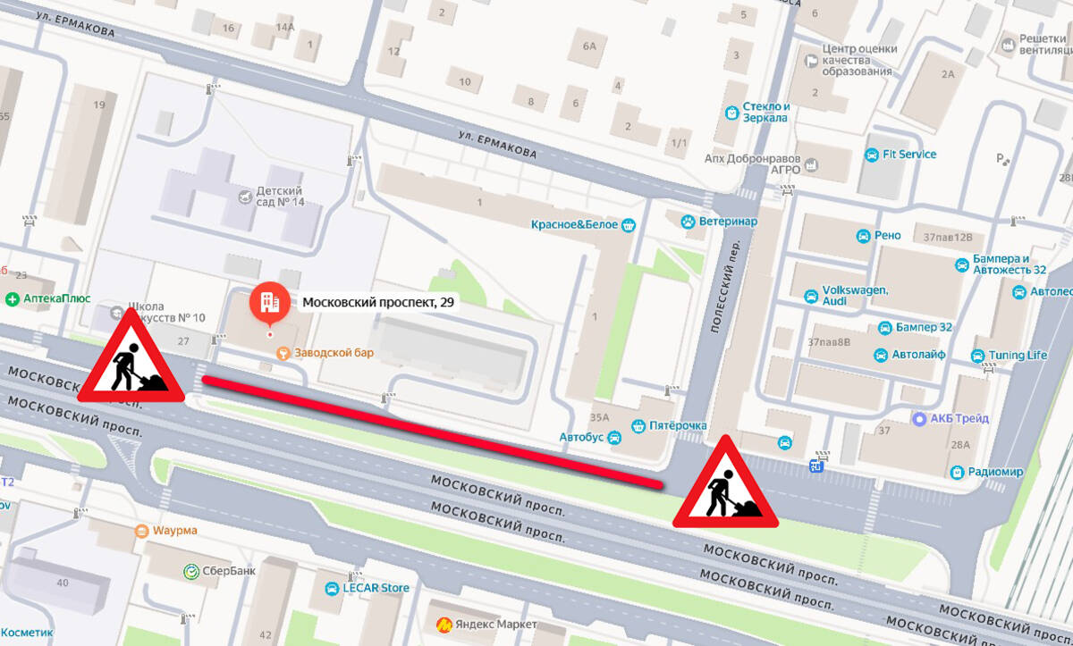 С 15 по 17 октября в Фокинском районе Брянска будет ограничено движение автотранспорта на участке дороги-дублера проспекта Московского от дома №29 до дома №35А.
