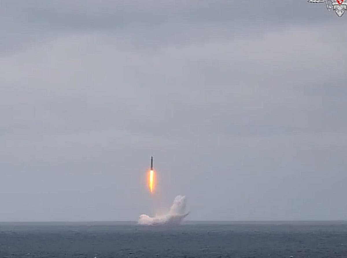 Из акватории Баренцева моря с атомного подводного крейсера «Брянск» осуществлен пуск ракеты «Синева».