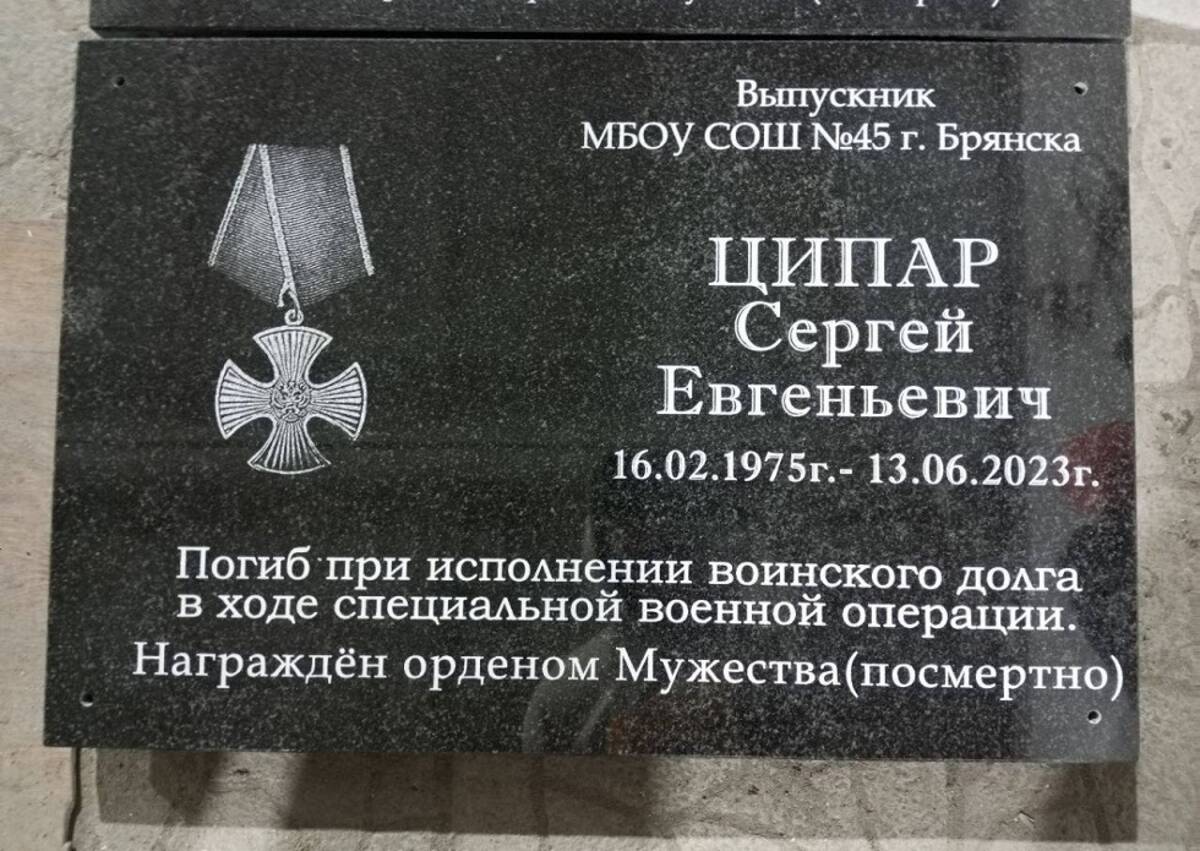 В Брянске на фасаде здания школеы №45 торжественно открыли мемориальную доску в память о выпускнике Сергее Ципаре. Он погиб, выполняя боевые задачи спецоперации.