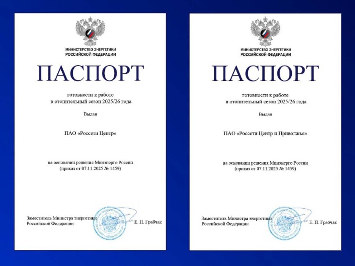 «Россети Центр» и «Россети Центр и Приволжье» получили Паспорта готовности к прохождению отопительного сезона. Готовность компаний к работе в осенне-зимний период 2025/2026 года подтверждена приказом Минэнерго России. Об этом БрянскToday сообщили сегодня, 2 декабря.