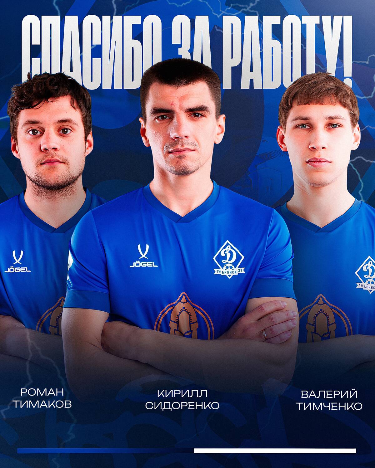 Футбольный клуб «Динамо-Брянск» продолжает обновление состава, объявив о завершении сотрудничества с тремя игроками — защитником Романом Тимаковым, полузащитником Валерием Тимченко и нападающим Кириллом Сидоренко. Контракты всех футболистов истекают 31 декабря 2025 года.