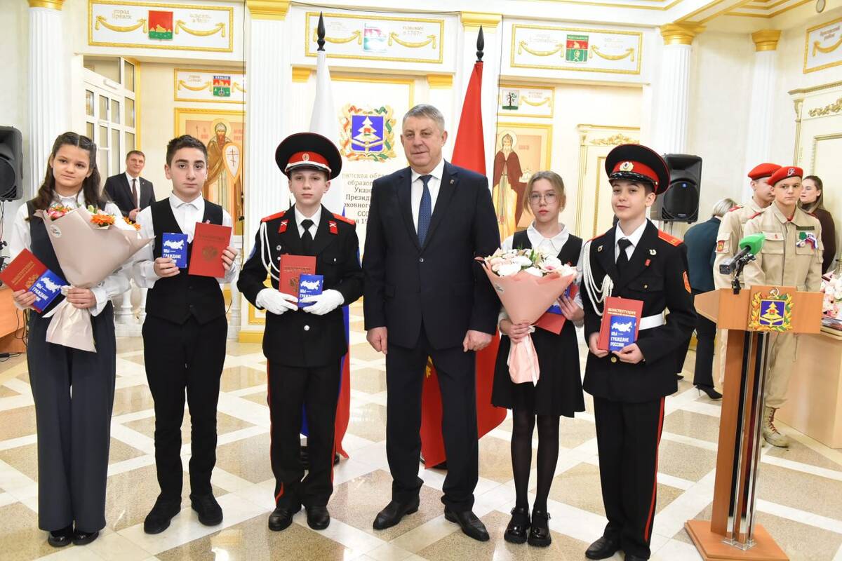 В День Конституции Российской Федерации юные жители Брянской области получили паспорт, который знаменует вступление во взрослую жизнь и обретение всех прав и обязанностей гражданина. Главный документ страны вручил лично губернатор региона Александр Богомаз.