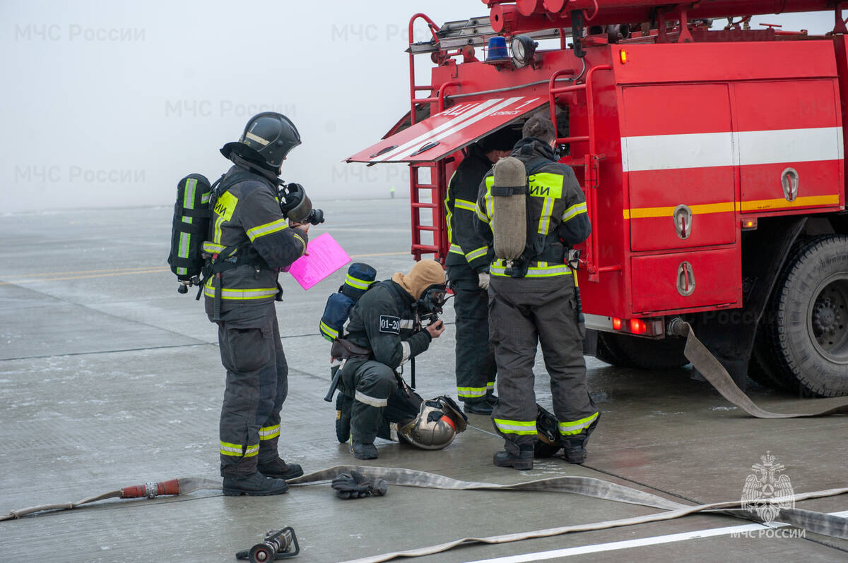 По сценарию учений, после приземления пилот сообщил о задымлении в кабине и разливе топлива. Аварийно-спасательные службы аэропорта были немедленно оповещены и прибыли на место происшествия. Ведомственная аварийно-спасательная команда аэропорта оперативно провела эвакуацию пострадавших и выгрузку багажа из воздушного судна. Пострадавшим была оказана первая медицинская помощь.