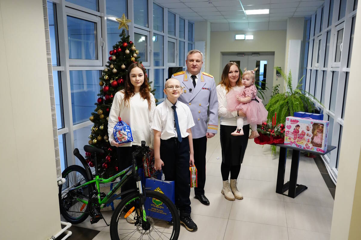 Глава брянской полиции торжественно передал Кириллу двухколёсного «друга», набор канцелярских принадлежностей и сладкий подарок. Не остались без презентов и его родные.