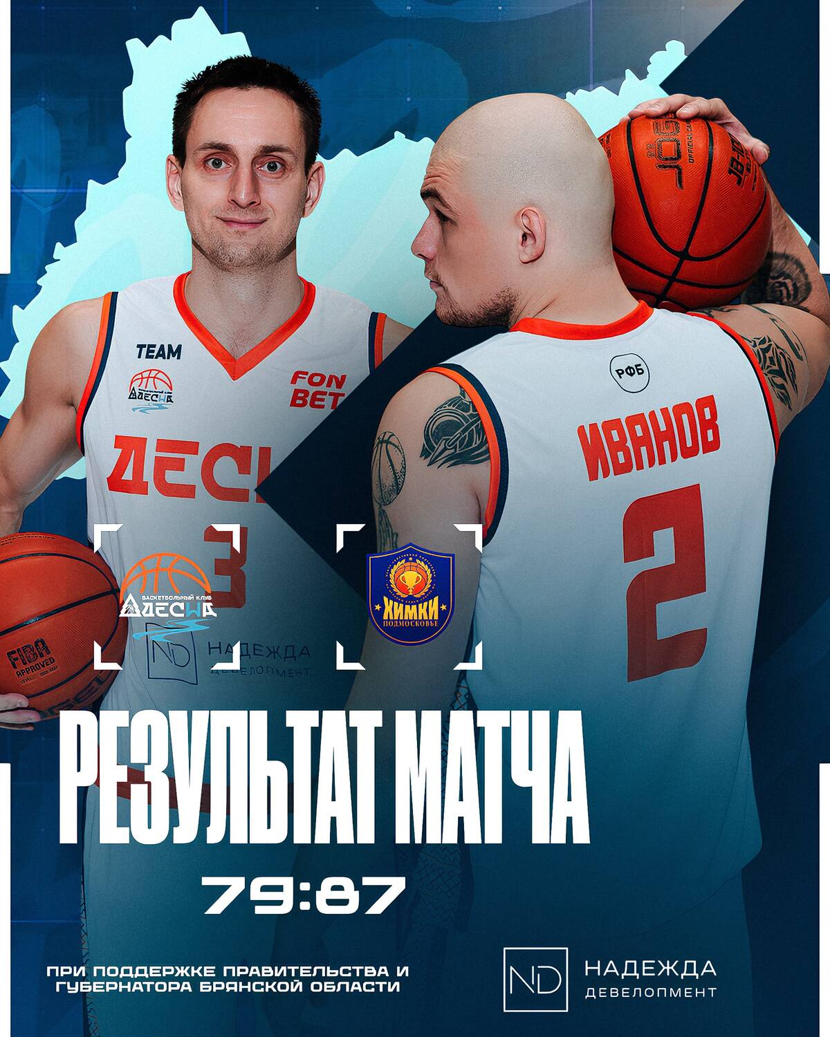 Брянская «Десна» уступила «ЦСП-Химки» в первом домашнем матче 2026 года со счетом 79:87. Игра прошла в напряженной борьбе, однако гости смогли вырвать победу.