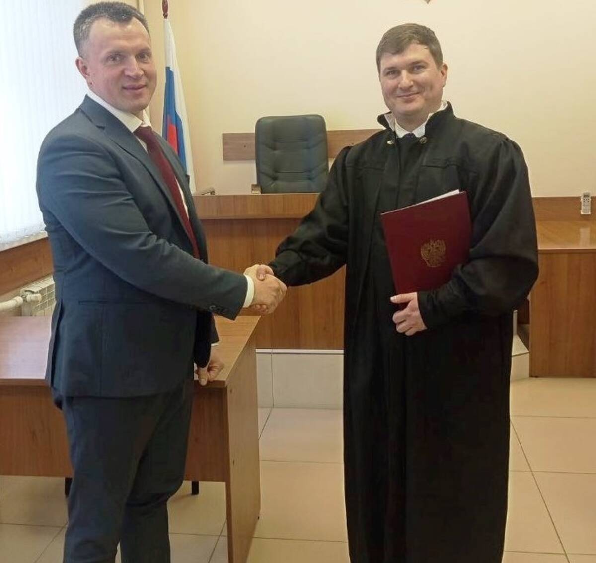Врип председателя Жуковского райсуда Вячеслав Горелов от лица коллектива поздравил Андрея Петровича со вступлением в должность судьи.