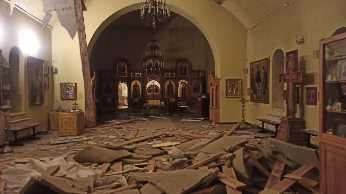 Вторая ракета повредила трапезную часть: разбита крыша, вырваны двери и окна. В алтаре выбило два окна, но сам алтарь не пострадал. Осколки долетели до дома, где была семья священника — там выбило окна. Все остались живы.