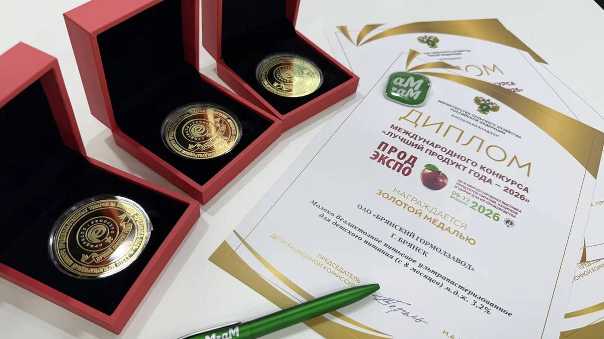 На международной выставке «Продэкспо-2026», завершившейся в Москве, Брянский гормолзавод получил сразу три золотые медали конкурса «Лучший продукт года-2026». Высшую оценку экспертов завоевали: безлактозное ультрапастеризованное молоко для детей с 8 месяцев, а также два вида биотворога с фруктами без добавления сахара — клубника-банан и манго, предназначенные для питания малышей с 6 месяцев.