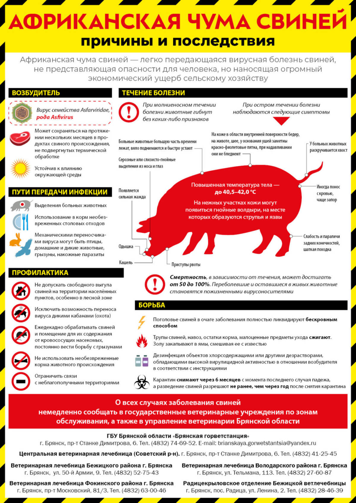 В случае появления признаков заболевания у свиней или их внезапной гибели управление ветеринарии настоятельно рекомендует немедленно сообщать об этом.