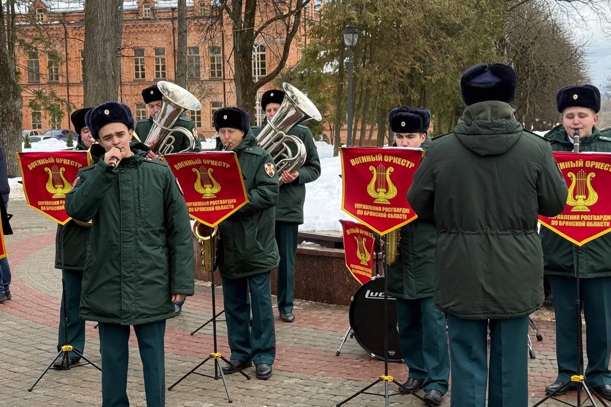 Военный оркестр управления Росгвардии по Брянской области устроил праздничный сюрприз для жительниц областного центра в преддверии 8 Марта. Музыканты выступили сразу на двух площадках — в центральном сквере и у крупного торгового центра, сообщили в пресс-службе ведомства.
