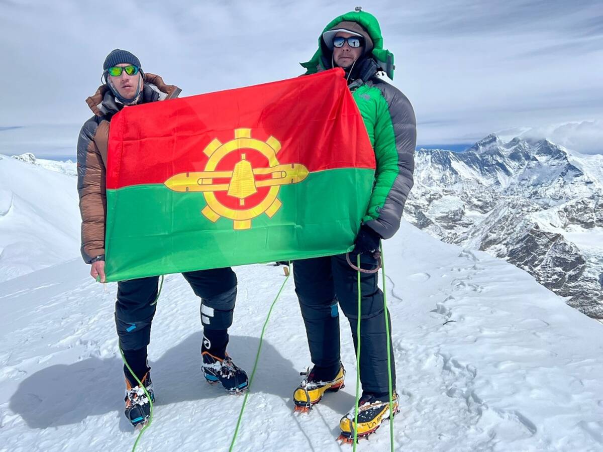 На вершине наши земляки развернули флаг родного города. Они рассказали, как все было не просто.
