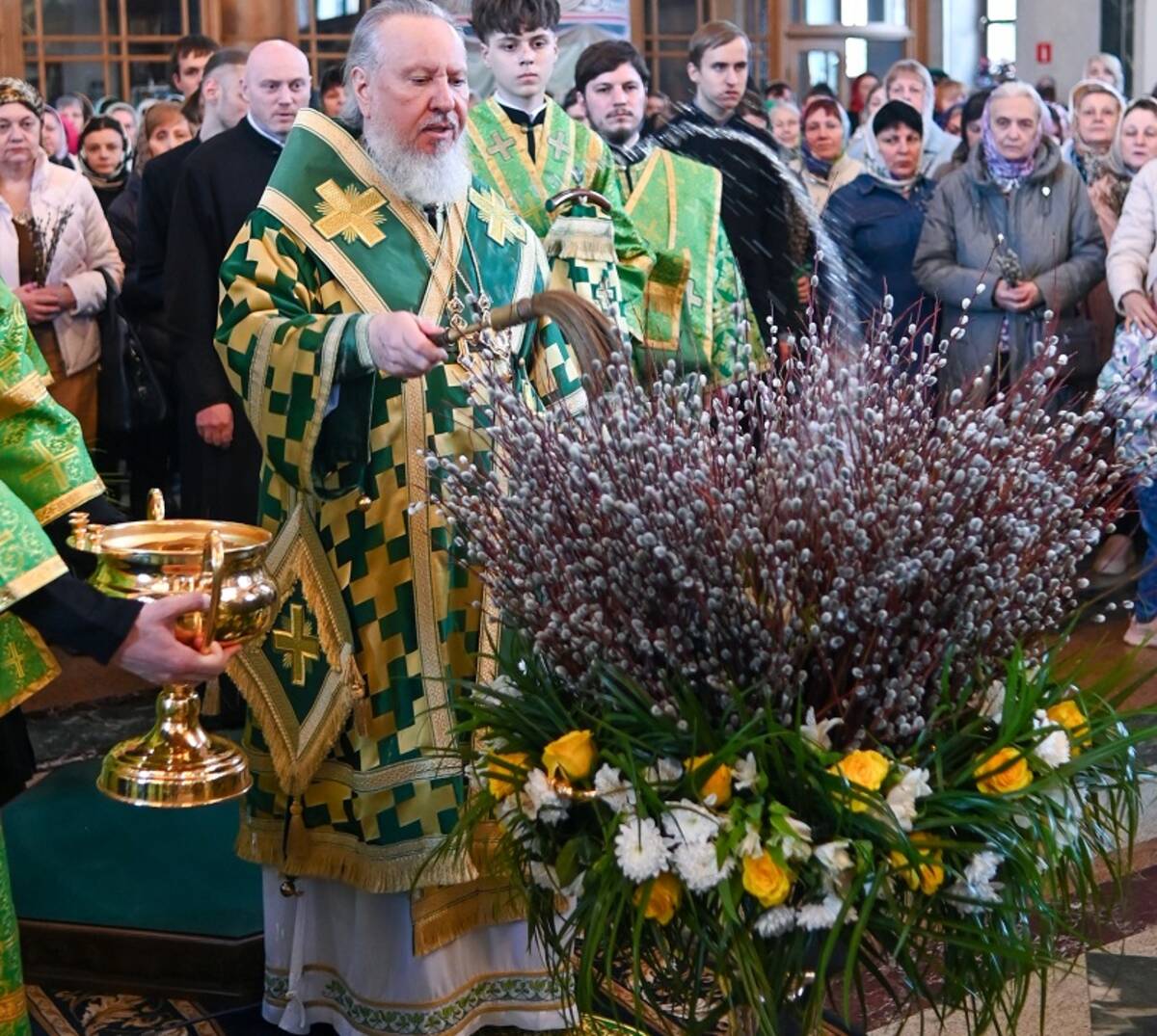 После чтения Евангелия владыка прочитал молитву на благословение вербных и пальмовых ветвей (ваий) и окропил святой водой вербы, которые принесли с собой брянцы.